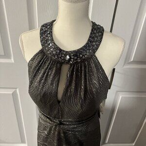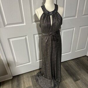 Beautiful gray Sparkling Halter Evening Gown With Sequins Around The Neck Sz 12