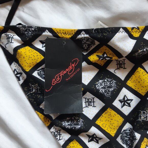 Bran new Ed Hardy bikini with tags, both never worn, top & bottom size medium, black & yellow, both size medium, NO LOW BALL OFFERS!