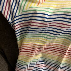 Lands’ End Women’s V Neck 3X T-shirt in Rainbow Stripe Pattern.