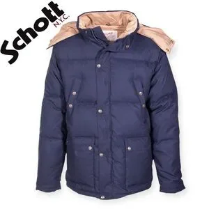 Schott NYC Down Filled Hooded Puffer Jacket in Navy Blue