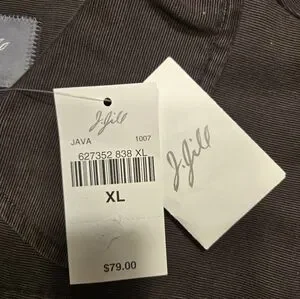 Light-weight short jacket. Micro corduroy-100% cotton. Size XL-PTP 22 1/2",front center 21",sleeve 24". 4 small front pockets,snapped. Decorative buttons-one extra. NWT