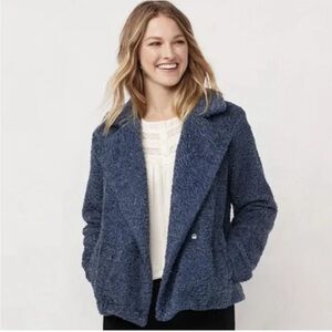 LAUREN CONRAD Women’s Dark Slate Blue Pink Long Sleeve Shaggy Moto Jacket