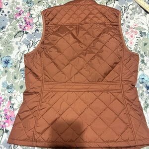Perfect for the cooler weather. This neutral brown fuinloth quilted vest with go with any outfit. So cute and brand new. Light weight.