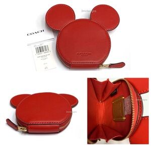 - COACH x Disney Electric Red Glovetanned Leather Mickey Coin Purse/Wallet