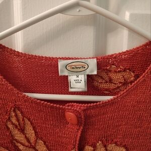 Talbots Coral and Apricot Cardigan Embroidered Floral Sweater Size M