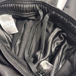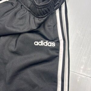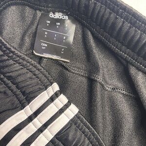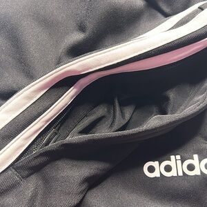Adidas Joggers, used and worn only twice for a short period of time- gently used. The item is in good condition, with lil to no wear and tear. The item does have a small mark on it as seen in 4th photo, may or may not be removable. The item has waist drawstrings as seen in photos and 2 side zipper pockets, zippers work good and are in good condition.