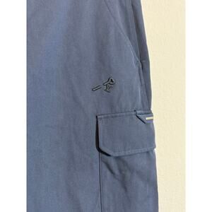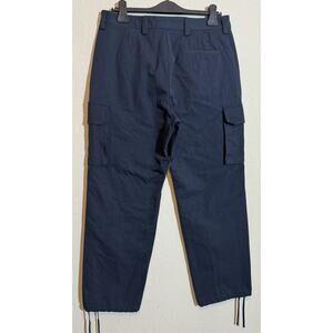 These cargo pants are made from a mixed wool and cotton twill with an elegant drape. They have practical patch pockets on the sides, paneled details on the legs and drawstrings at the hems. A staple tag on the left pocket and a pin signature embroidered onto the left leg complete this casual yet distinguished piece.