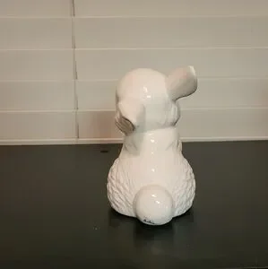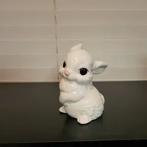 Adorable ceramic bunny rabbit, perfect for spring and Easter decorations.