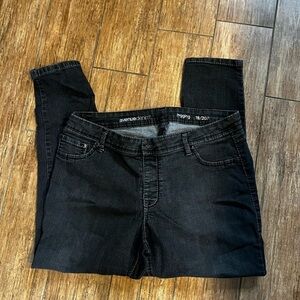 This is a preowned pair of women’s Jeggings from the Avenue. These were only worn a few times. These pants are distressed black. They are a pull on pant with one button for closure. These are super cute and very Comfortable.
