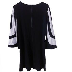 Cache Vintage Zip Closure Fit Black Dress With Wide Bell Black & White Sleeves.