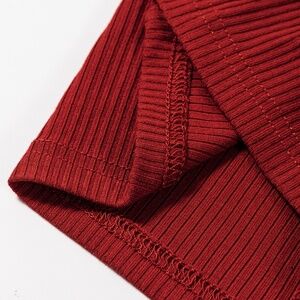 Ribbed knit fabric adds texture and a comfortable stretch, ensuring a flattering fit.