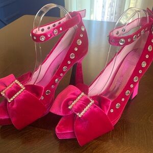 #women #shoes #heels #platforms #velvet #unwrap #me #dollskill #sugarthrillz #doll #barbie #barbiecore #bedazzled #unique #glamorous #standout #party #holiday #date #autumn #fall #winter #bold #rhinestones