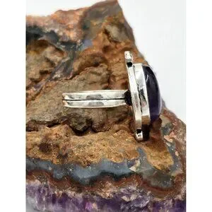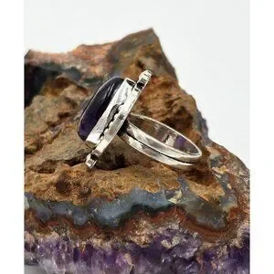 925 Sterling Silver Plt Oval Cabochon Amethyst Ring Sz 6 Bezel Southwest Jewelry