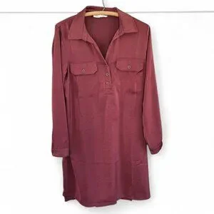Lucky Brand Womens Long Sleeve Tunic Dress In Burgundy Size Large