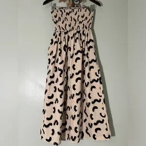 A New Day Women’s XS Strapless Smocked Tube Top Midi Sun Dress, Cream & Black, 100% Cotton