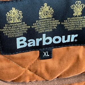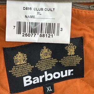 Barbour quilted jacket. Green exterior with burnt orange interior. Very good condition. XL