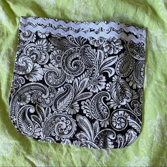 Light green base with pale white print, with black and white paisley trim