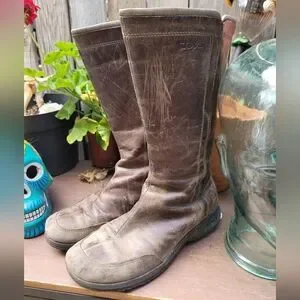 Teva Capistrano Brown Distressed Leather Boots • 12” Zip up • Waterproof •