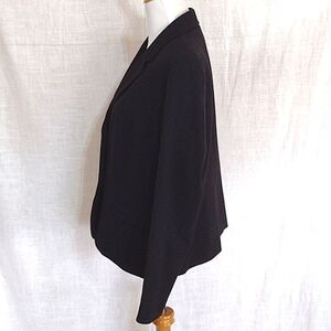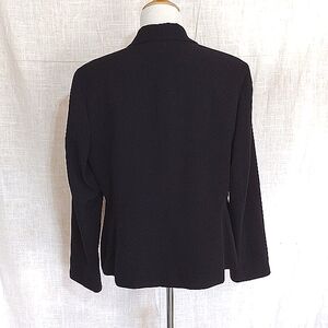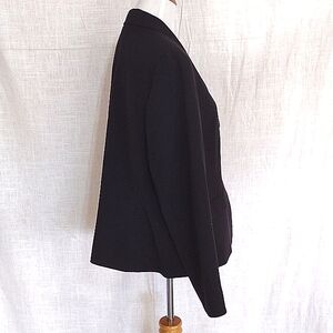 Perfect staple black jacket for jacket weather! Wear it to work and then out for dinner or drinks later, it will bring a little boss-lady polish to any outfit. Perfect condition, no visible flaws. Flat measurements pit to pit 23", shoulder to hem 25", shoulder to cuff 25". Thanks for looking!