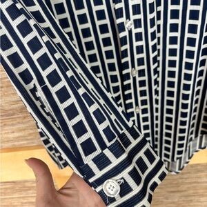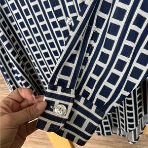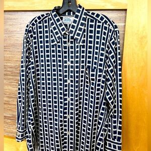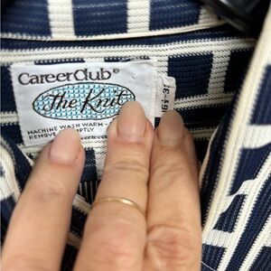 Career Club “The Knit” men’s long sleeve navy/bone color shirt. All buttons are intact. Really excellent vintage condition. 16-1/2, 32