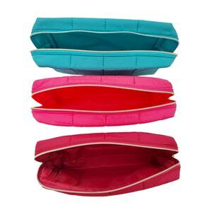 Sephora Quilted Fabric Makeup Bag Lined Zipper Green Hot Pink Burgundy Set of 3