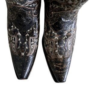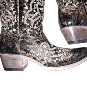 You can't get much more versatile than these black worn look cowgirl boots. With the black and brown coloring, these will coordinate with just about any color. They are perfect whether going for a Western look or the Boho look. They are 15" tall, including the 2" heel. They will look adorable with shorts, jeans, skirts, or dresses. There's just no way to go wrong with these boots.