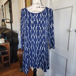 Alfani Three Quarter Sleeves Navy and White Stretch Top Sz XL