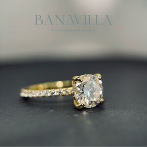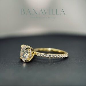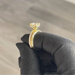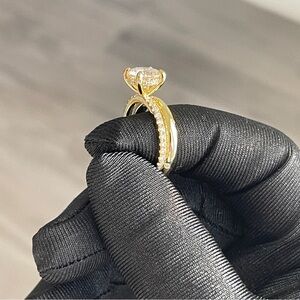 S925 in 14K Gold Plating Hidden Halo Engagement Ring 2ct Moissanite Diamond