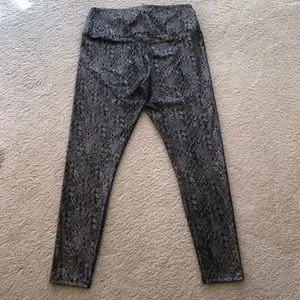 These leggings are prettier than the pictures and are very flattering. They are a comfortable high-rise fit and are shaping leggings as well. The fabric has a nice sheen to it and is silver, gray, and black. Dress them up for a party or dress them down for a run. They are washable and would make a great versatile addition to your closet! They SOLD OUT in a very short time. (I purchased the wrong size.🙁)