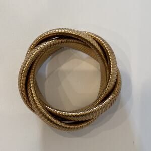 Gold-Tone Herringbone Chain Twisted Bangle Bracelet EUC OS Unbranded Slip On