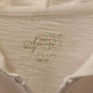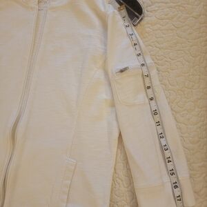 White 3/4 sleeve 100% cotton light weight zip up hoodie.