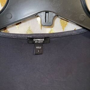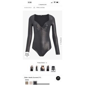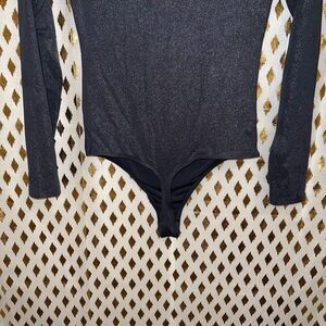 Express body contour body suit in metallic gunmetal twist front size S