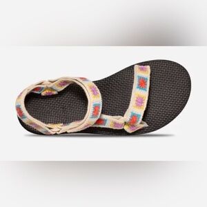 Featuring soft crochet straps inspired by vintage “granny squares,” this whimsical Flatform is ready for festival grounds to picnics in the park. Elevated by a 1.5-inch platform, the Flatform Universal Crochet is grounded in the same durable rubber outsole that made the original a closet staple.