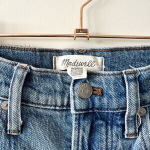 Gently used Madewell perfect vintage jeans. Medium wash denim, distressed, raw hem. High waisted. Excellent used condition.