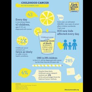 **15% of proceeds are donated to an organization dedicated to funding childhood cancer research (e.g. CureSearch for Children’s Cancer, Alex's Lemonade Stand Foundation)!