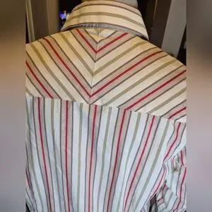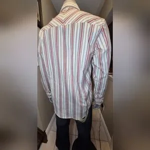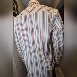 Kenneth Cole Men's Long Sleeved Shirt. Size USXXL. Buttoned down front; beautiful Stripes. P-P 26"; Length 31". 2 buttoned cuff and buttoned up collar.