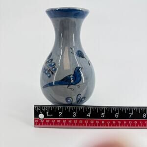 Vintage Mexican Tonala Pottery Vase 8 in Signed Hand Painted Blue Bird Floral