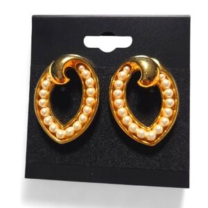 Avon Vintage Goldtone Faux Pearl Earrings Steel Posts