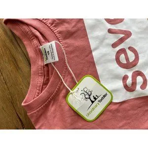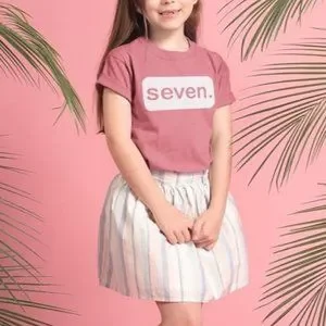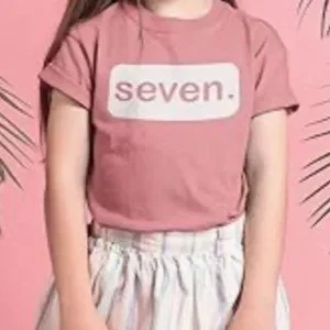 Birthday seventh Seven 7th birthday girls shirt small pink peach tee tshirt top