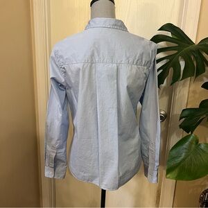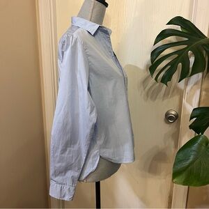 blue striped long sleeve collared button up shirt