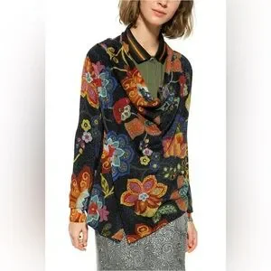 Desigual Celia Floral Knitted Zip Cardigan Jacket Women’s Size XL
