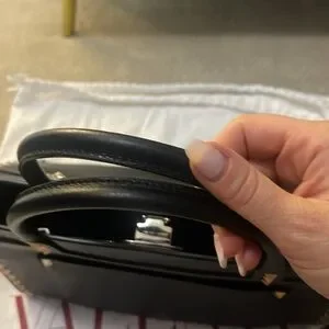 Light gold-toned studs lining the borders of the bag and the shoulder strap