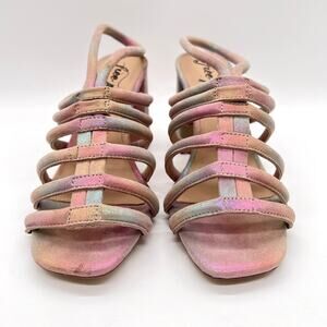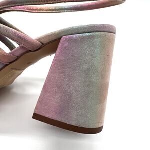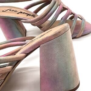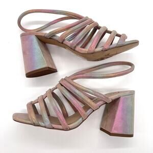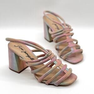 FREE PEOPLE Colette Leather Heels 7.5 Metallic Rainbow Strappy Sandal Cage NEW