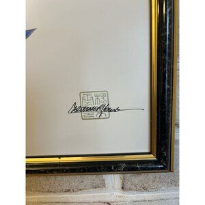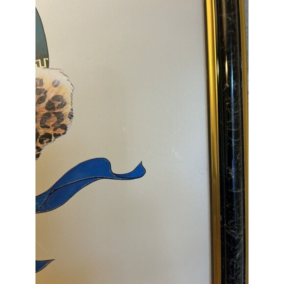 Please note condition: this is framed but there is no glass in the frame. This has a a few small flaws on it, the biggest being a surface indent/tear/scratch which is shown in the last photo.