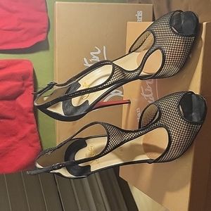 Christian Louboutin Black Suede and Mesh Peep toe. Size 42. Pre owned