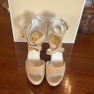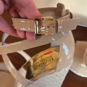 Michael Kors Gabriela Nude Patent Woven Wedge Sandal