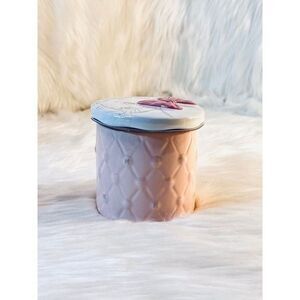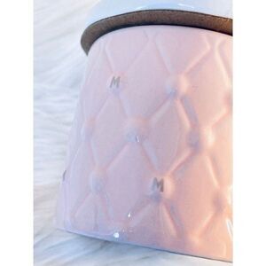 Stoneware candle base features embossed diamond pattern with ''M'' accents and matte finish