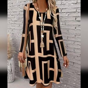Autumn New Arrival Geometric Pattern Long Sleeve Dress