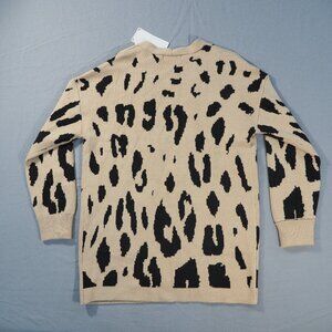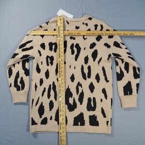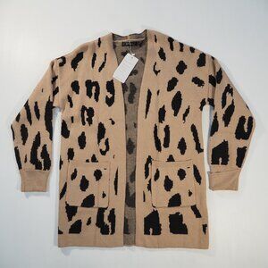 Zesica Sweater Cardigan Women Large Tan Leopard Open Front Duster Pockets Preppy