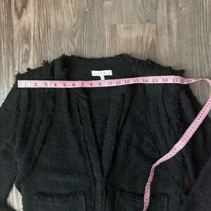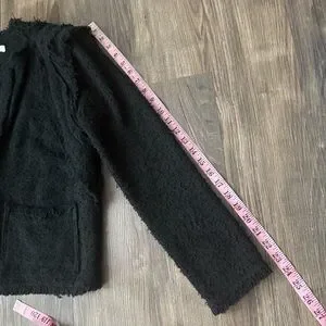 See photos for measurements. Can be worn as an evening jacket or relaxed with a pair of jeans. This is a jacket of many uses and fits so many styles.